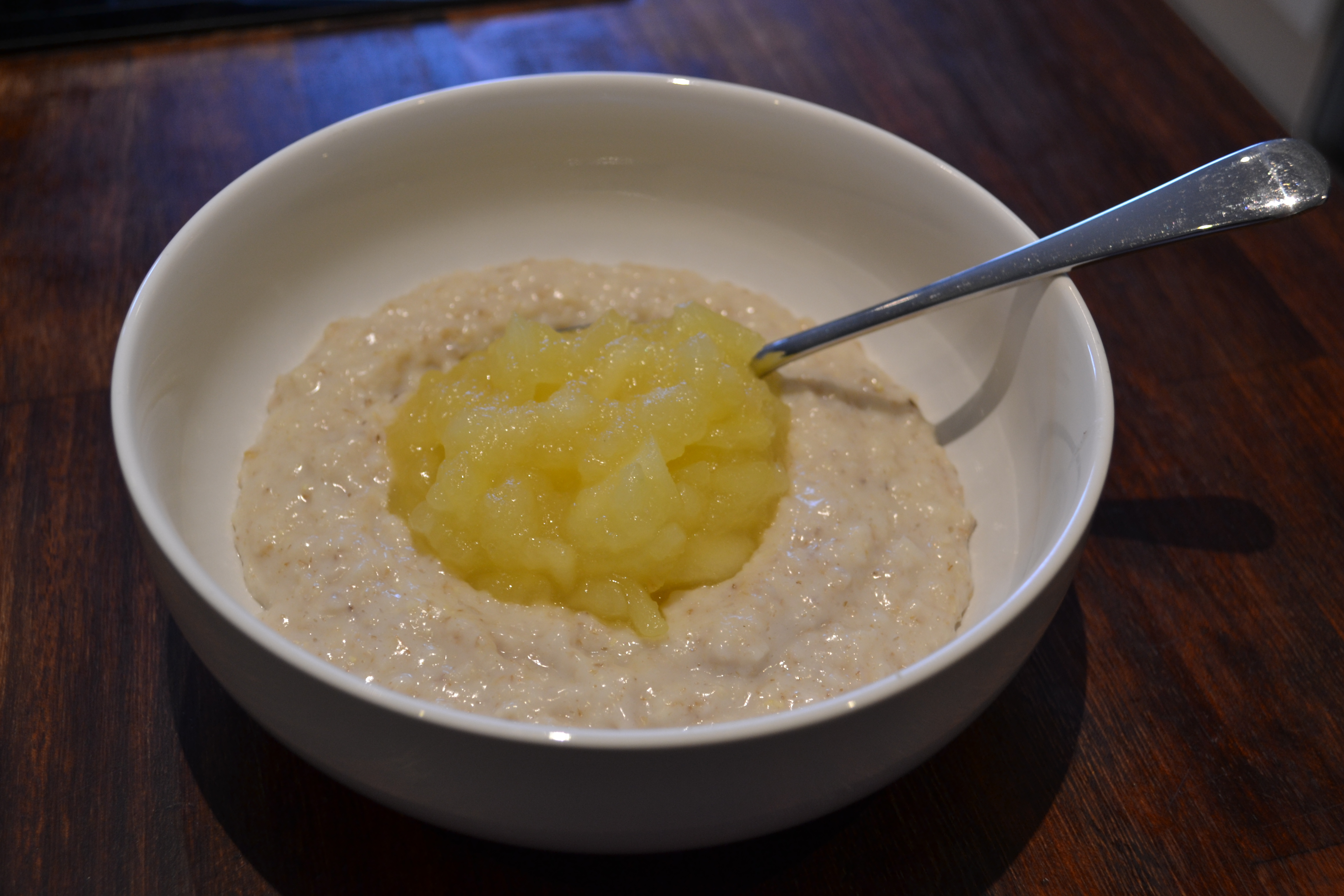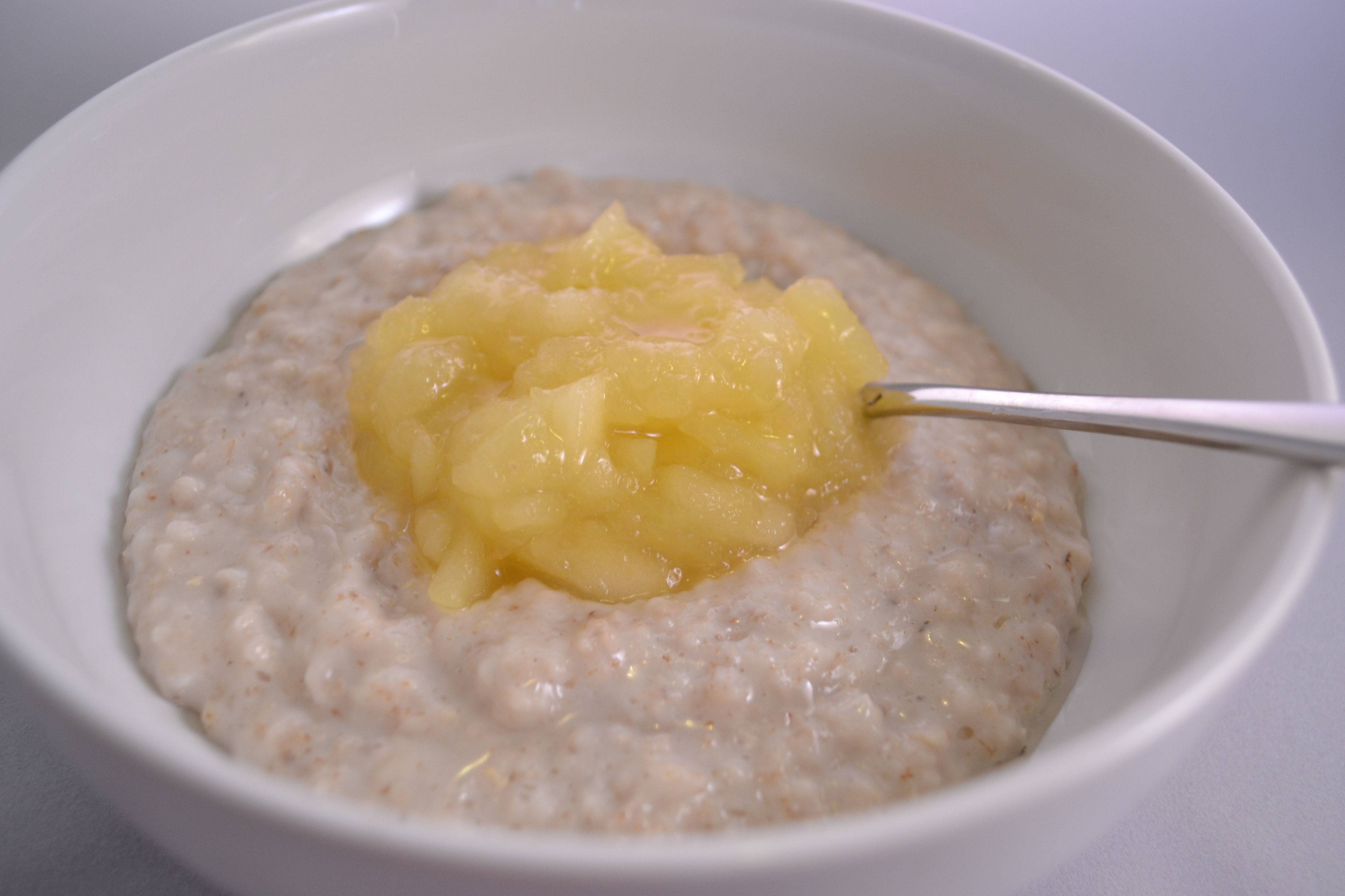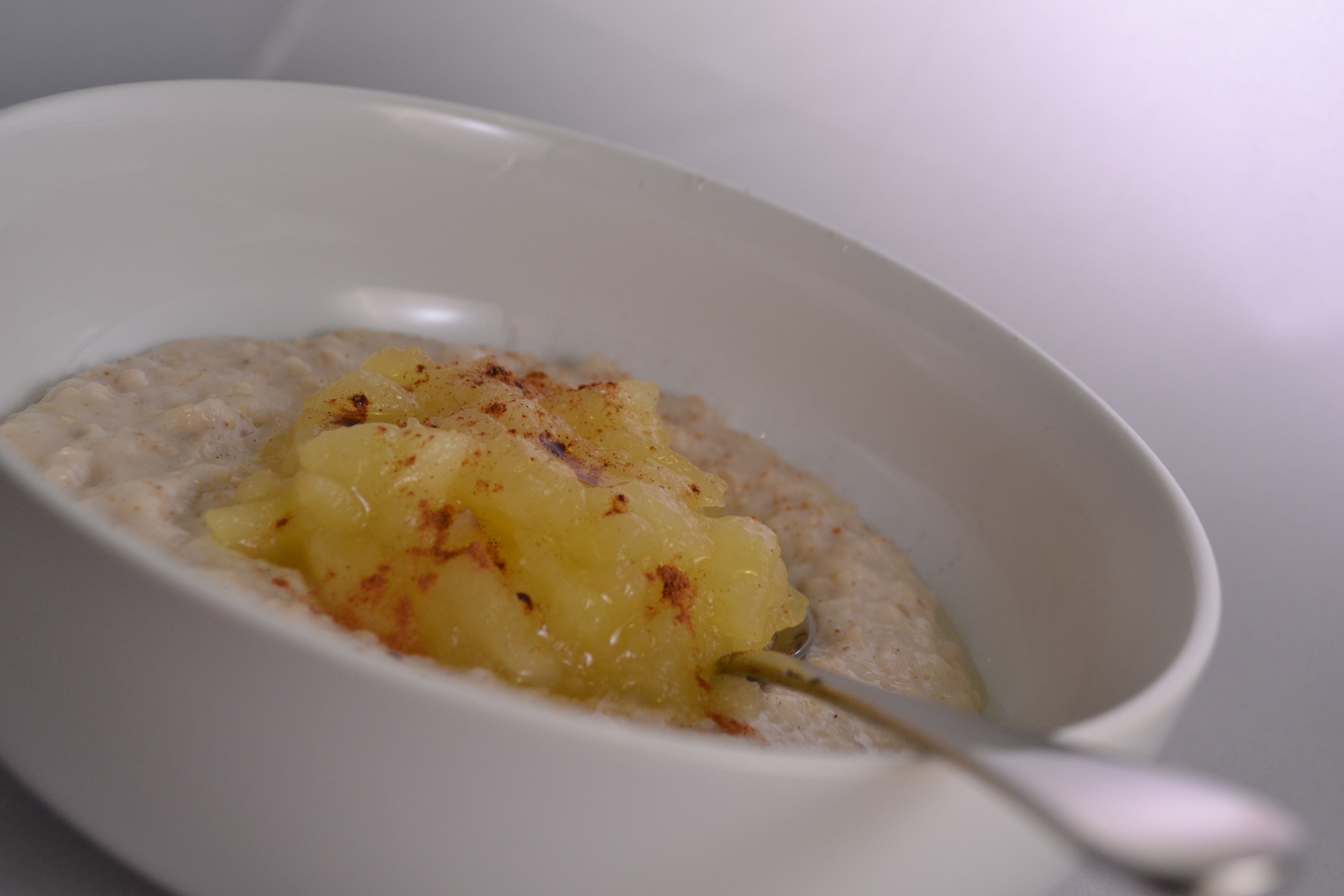 Take a Cameo apple: finely chop and place in a saucepan with the juice of one lemon. Cook until soft this will form your breakfast base. You can then choose to serve in a variety of ways.