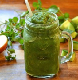 In a food processor, large bowl or smoothie maker , combine the apples, cucumber and orange juice and blend until smooth. Add the watercress and process again.